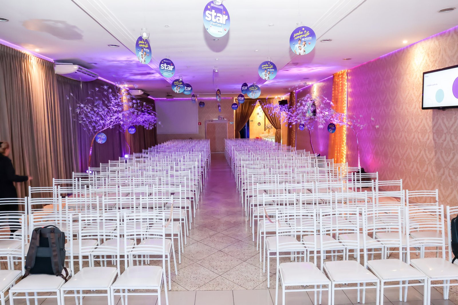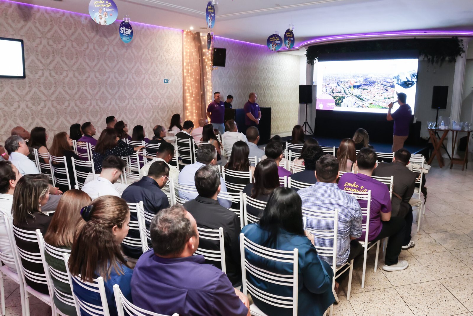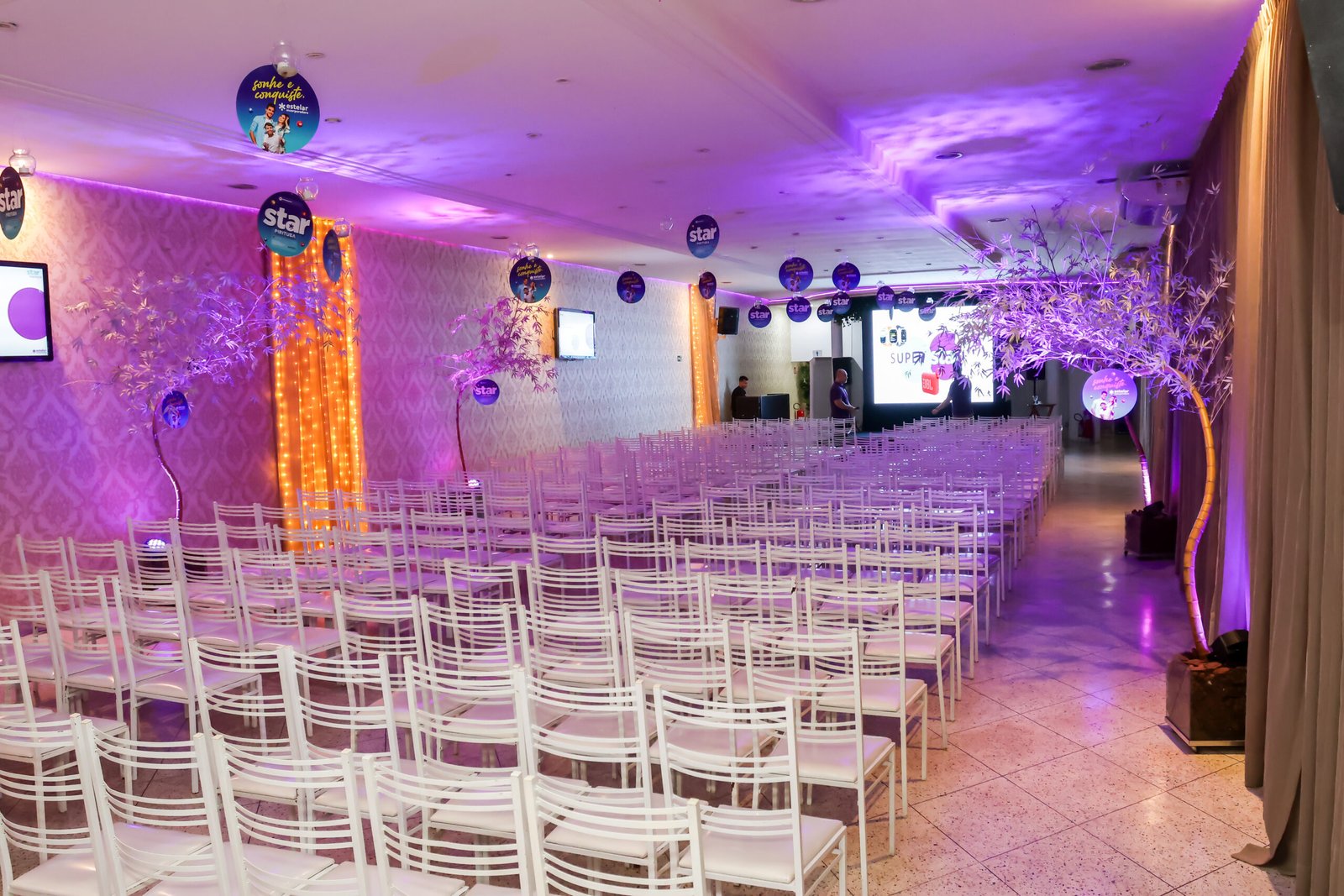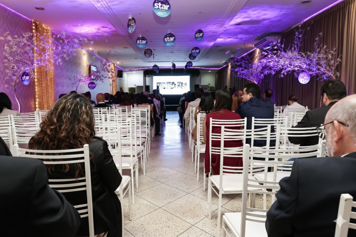 Projetor, som e iluminação prontos. Você foca no conteúdo, nós cuidamos do ambiente.